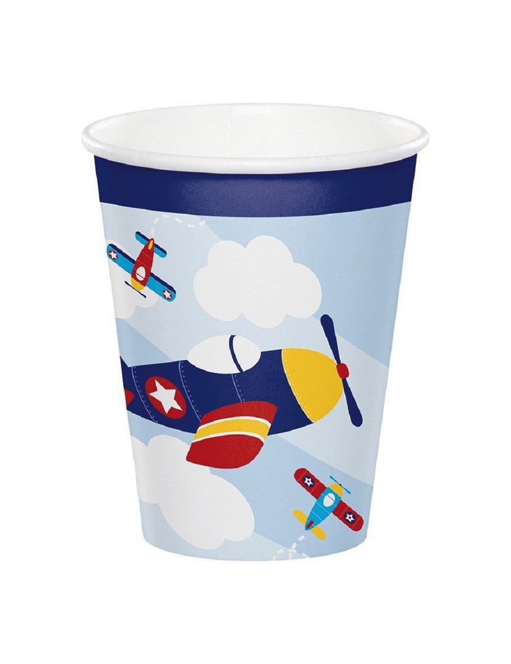 Set 8 pahare Party Avioane, capacitate 250 ml, de unica folosinta, fabricate din carton ecologic, perfecte pentru Prima aniversare si alte petreceri de copii.