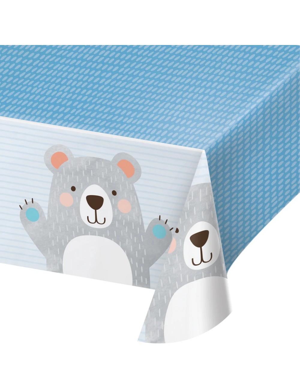 Fata de masa bleu, Party Ursuleti, dimensiuni 137 x 259 cm, fabricata din plastic, perfecta pentru Baby shower, Prima aniversare si alte petreceri de copii.