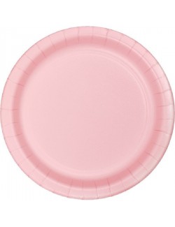 Set 8 farfurii desert, roz deschis - Classic Pink, diametru 18 cm, de unica folosinta, fabricate din carton, nu contin plastic.