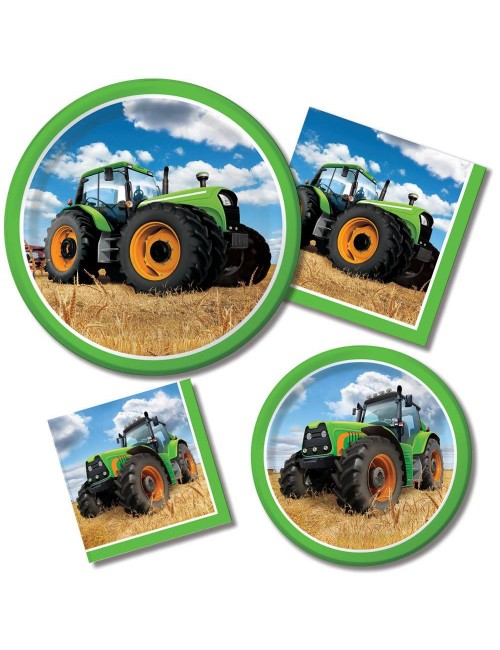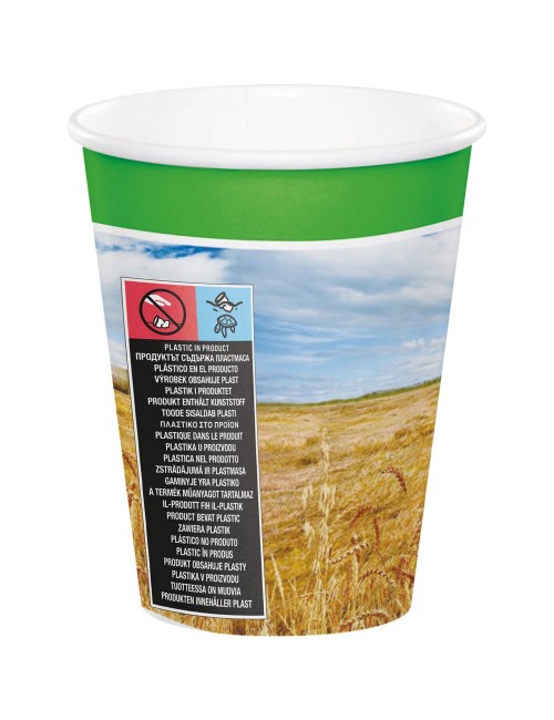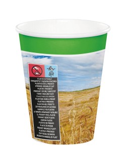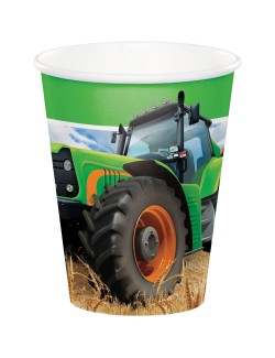 Set 8 pahare Tractor Time, 266 ml, de unica folosinta, din carton, imprimeu multicolor cu un tractor verde intr-un lan de grau.