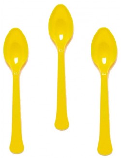 Set 24 lingurite galbene, Buttercup, reutilizabile, din plastic rezistent, lungime 16 cm.