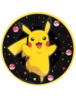 Set 8 Coifuri petrecere Pokemon, din carton, prindere cu elastic, contine cate 2 coifuri pentru fiecare personaj: Pikachu, Bulbasaur, Squirtle si Charmander.