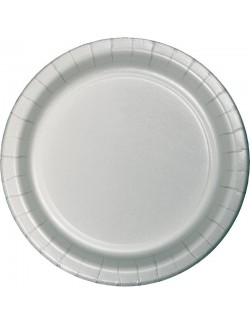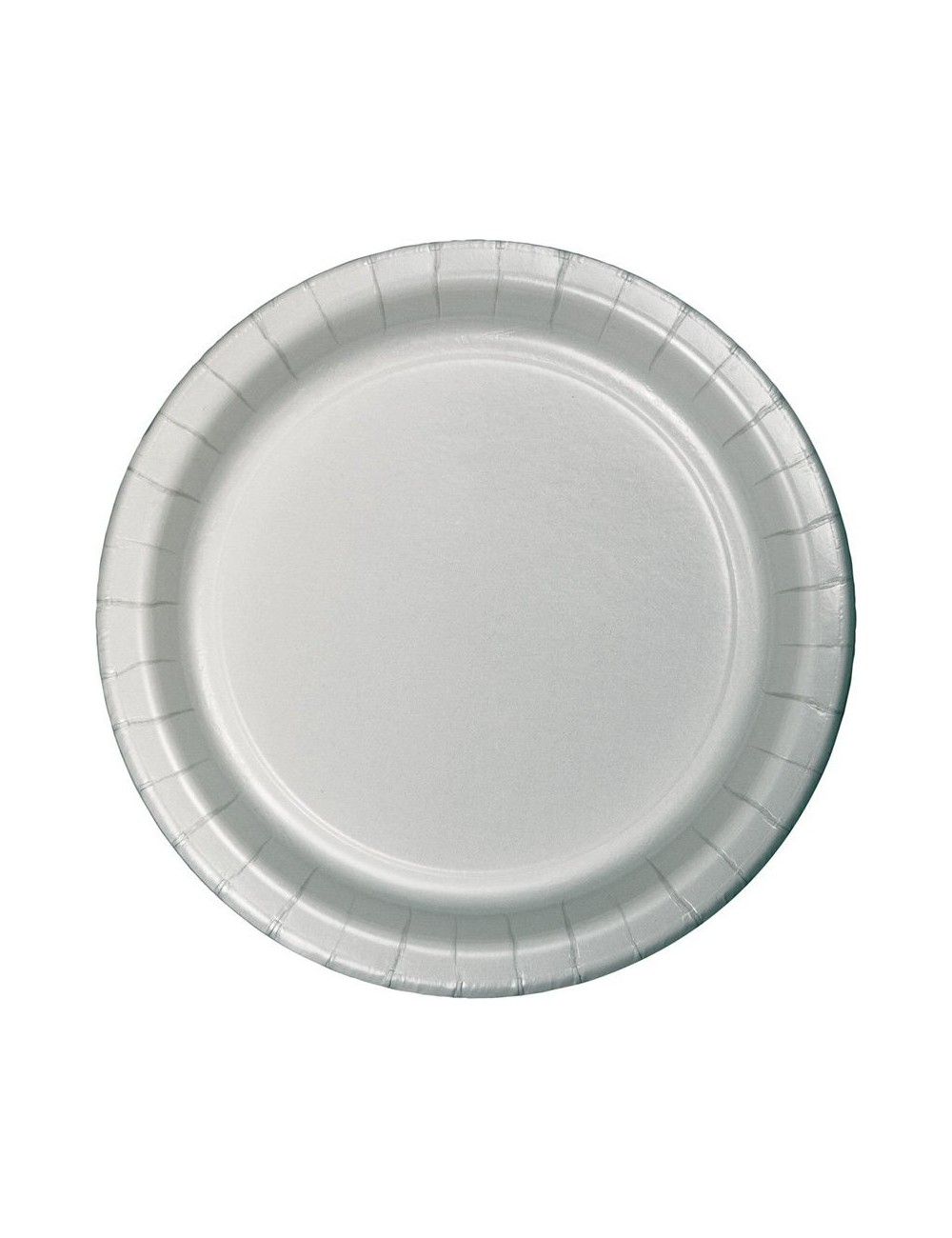 Set 8 farfurii argintii, Shimmering Silver, diametru 17 cm, de unica folosinta, fabricate din carton, pentru petreceri elegante.