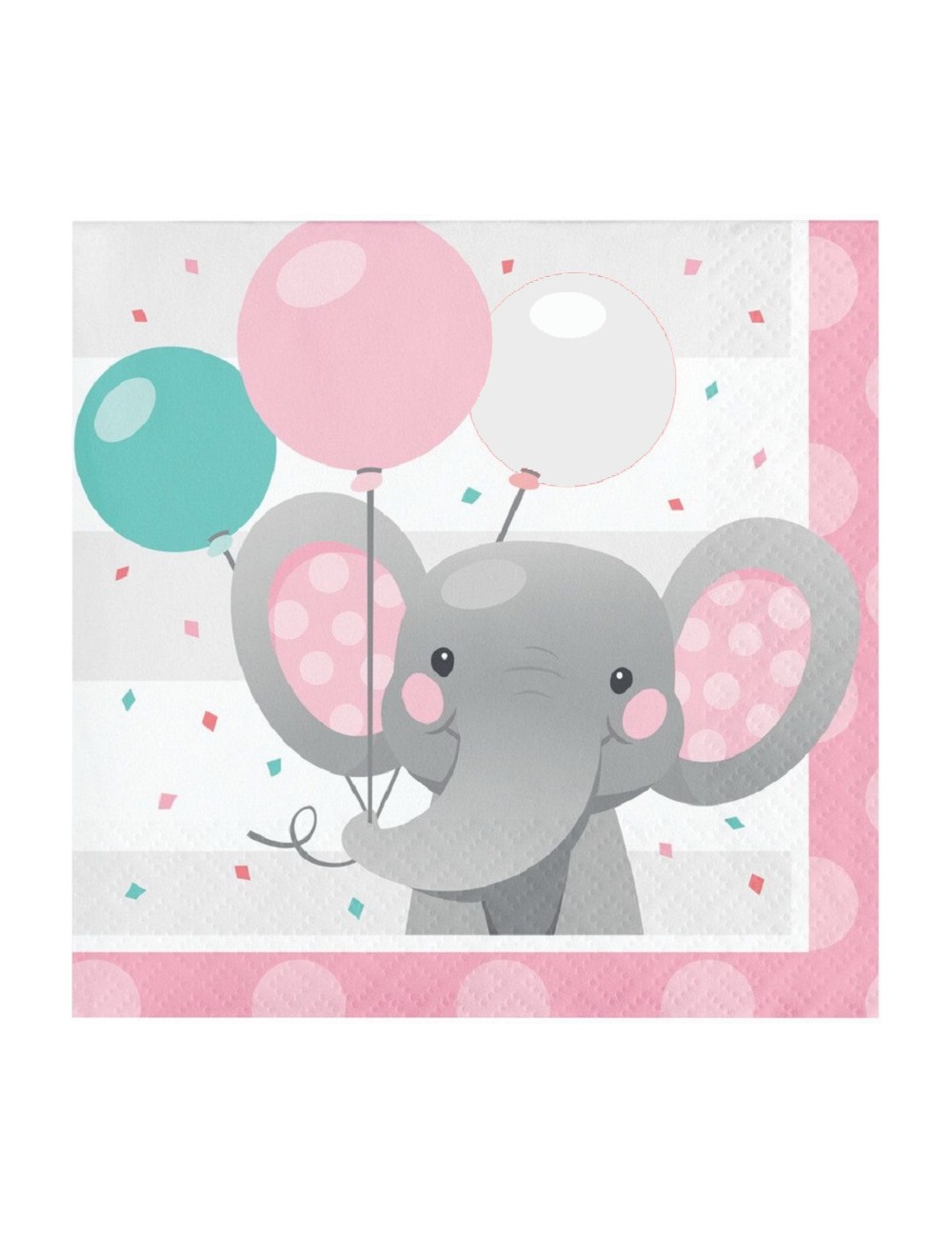 Set 16 servetele, Elefant, culori alb-roz, dimensiuni 25 x 25 cm (extins), din 2 straturi de hartie, perfecte pentru petreceri tematice.