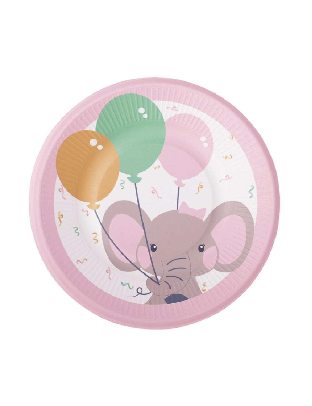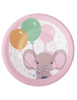 Set 8 farfurii Elefant, roz, diametru 18 cm. de unica folosinta, fabricate din carton ecologic, perfecte pentru petreceri de copii.