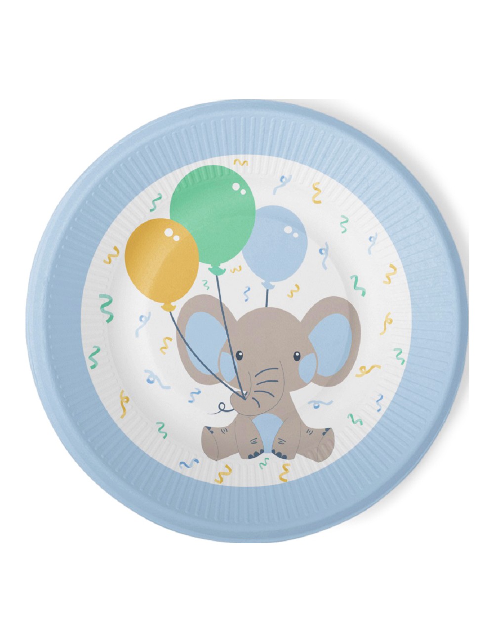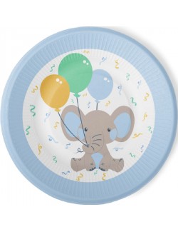 Set 8 farfurii Elefant, bleu, diametru 23 cm. de unica folosinta, fabricate din carton, perfecte pentru petreceri de copii.