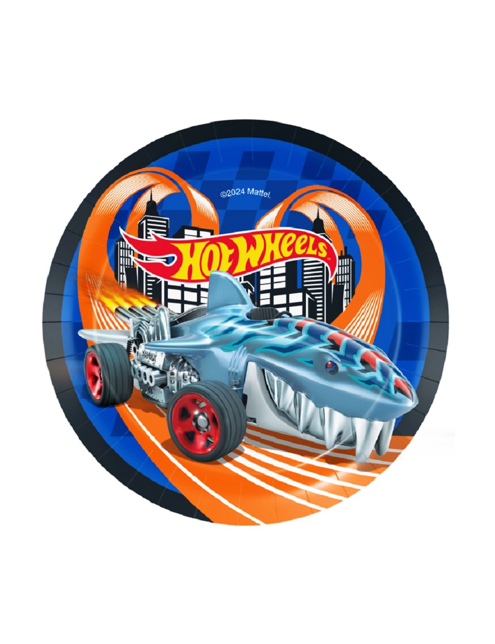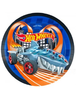 Set 8 farfurii desert, Hot Wheels, diametru 18 cm, fabricate din carton, imprimeu multicolor.