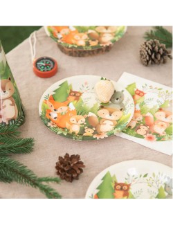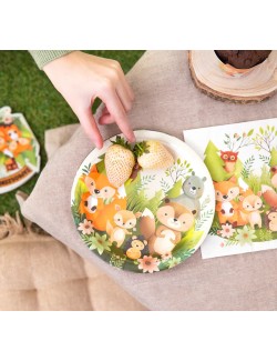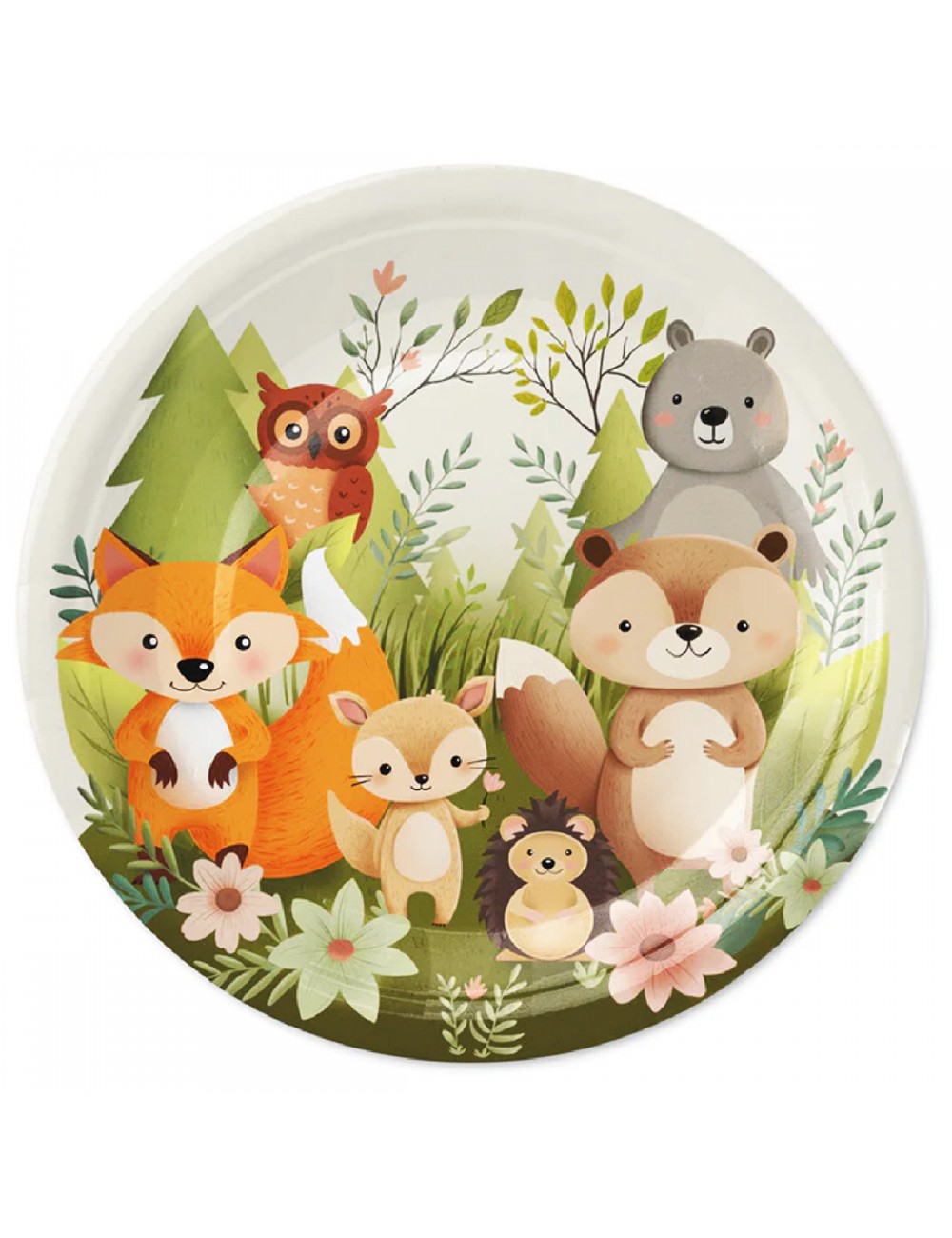 Set 6 farfurii Animale din padure, de unica folosinta, culori pastelate, fabricate din carton, diametru 18 cm, perfecte pentru petreceri tematice.