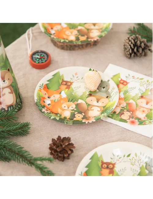 Set 6 farfurii Party animale din padure, diametru 18 cm, de unica folosinta, culori intense, fabricate din carton, perfecte pentru petreceri tematice.