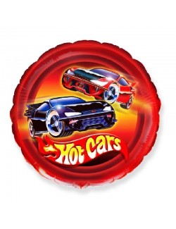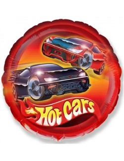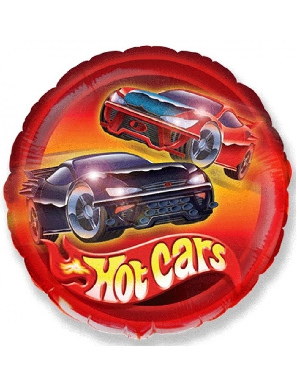 Balon folie Hot Cars, rotund, diametru 45 cm (dezumflat), imprimeu identic fata-verso, potrivit pentru umplerea cu heliu (pluteste) sau cu aer (nu pluteste).