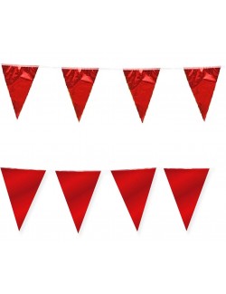 Ghirlanda gigant, cu stegulete de 30 x 45 cm, rosu-metalizat, lungime 10 ml, alcatuita din 15 fanioane din folie metalica rosu-rubin.