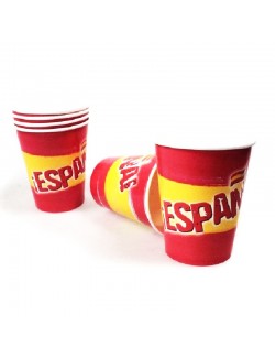 Set 8 pahare Party Spania, capacitate 250 ml, de unica folosinta, din carton, culoriile drapelului spaniol rosu-galben.