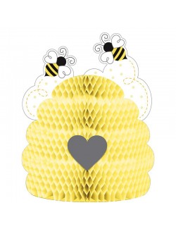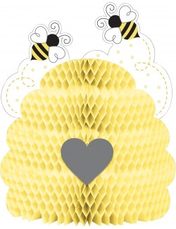 Decoratiune centru masa Fagure & Albinute, inaltime 30 cm, diametru 23 cm, din carton/hartie culoare galbena.