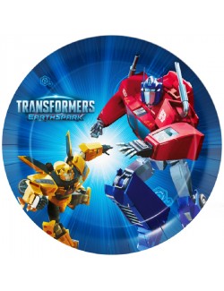 Set 8 farfurii Transformers, diametru 23 cm, de unica folosinta, din carton, perfecte pentru petreceri ale fanilor seriei de filme SF - Transformers.