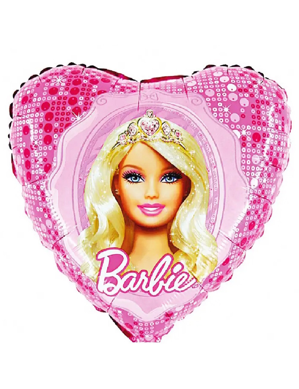 Balon folie Barbie, forma inima, dimensiuni 45 x 45 cm (dezumflat), imprimeu identic pe ambele parti, poate fi umplut cu aer sau cu heliu.