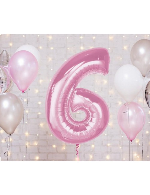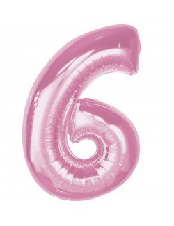 Balon folie Cifra 6, roz deschis, inaltime aprox. 92 cm (dupa umflare), potrivit pentru umplerea cu aer (nu pluteste) sau cu heliu (pluteste).