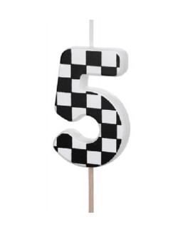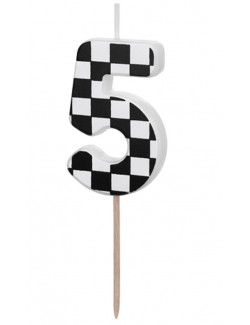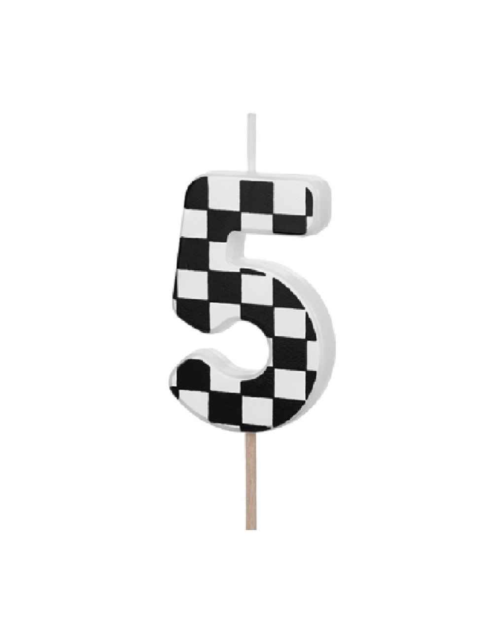 Lumanare tort, Cifra 5, din parafina alba, fata este in patratele alb-negre, perfecta pentru petreceri aniversare.