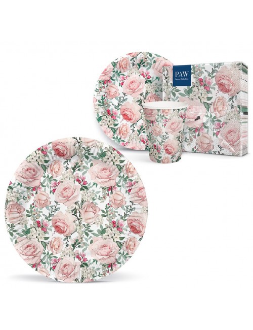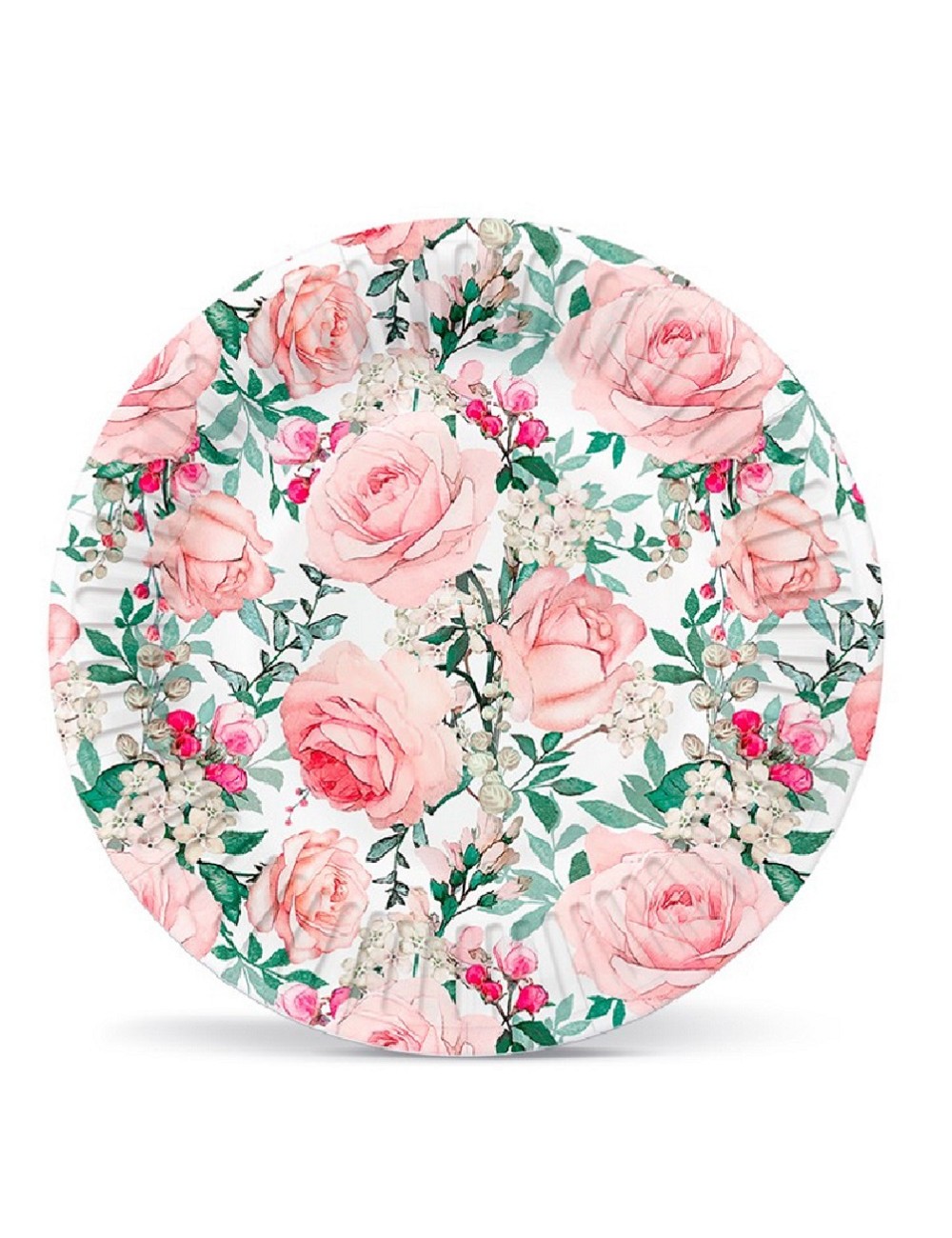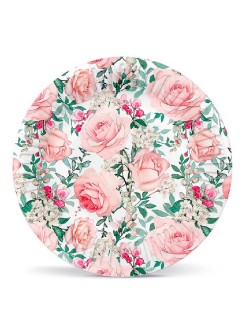 Set 8 farfurii Trandafiri roz, diametru 18 cm, de unica folosinta, fabricate din carton, nu contin plastic.