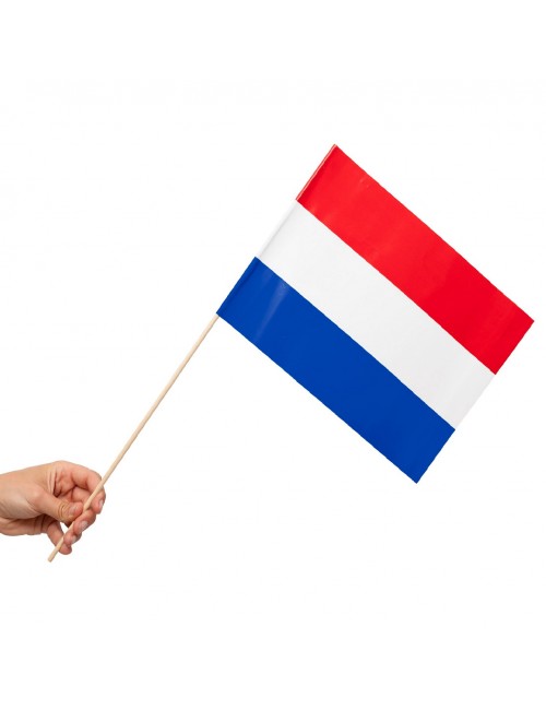 Set 10 stegulete Olanda / Tarile de Jos, din hartie, dimensiuni steag 20 x 30 cm si suport din lemn cu lungime de 50 cm.