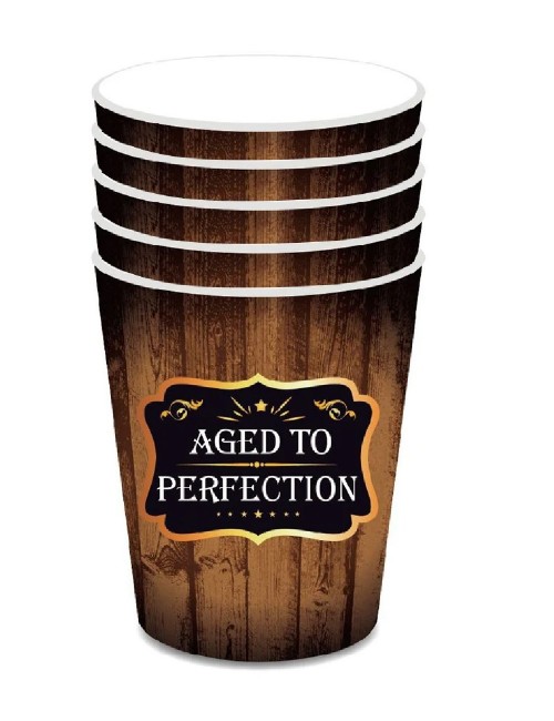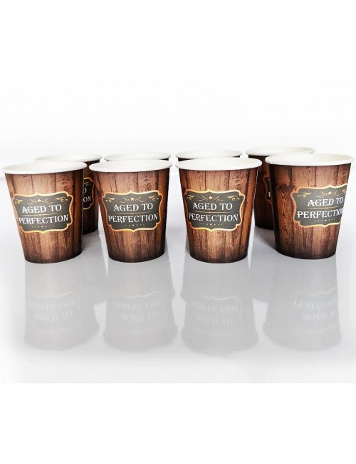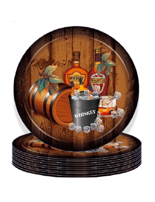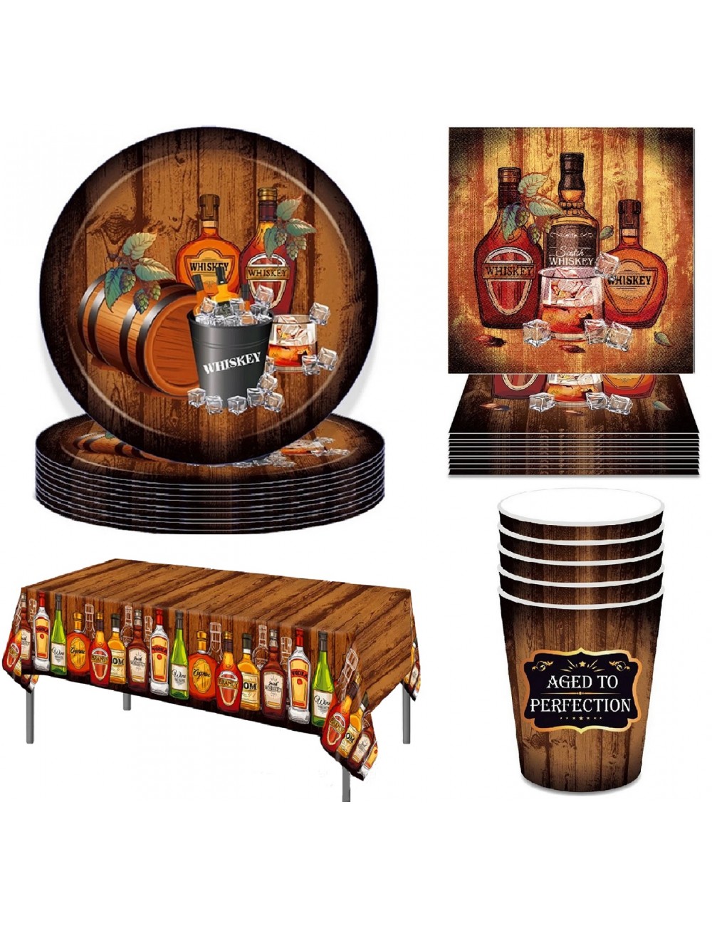 Set Petrecere adulti, Whiski, Beer party, pentru 8 persoane, contine 10 servetele din hartie 33 x 33 cm (extins), 8 pahare din carton de 220 ml si 8 farfurii de 23 cm, din carton, de unica folosinta si o fata de masa de 130 x 220 cm.