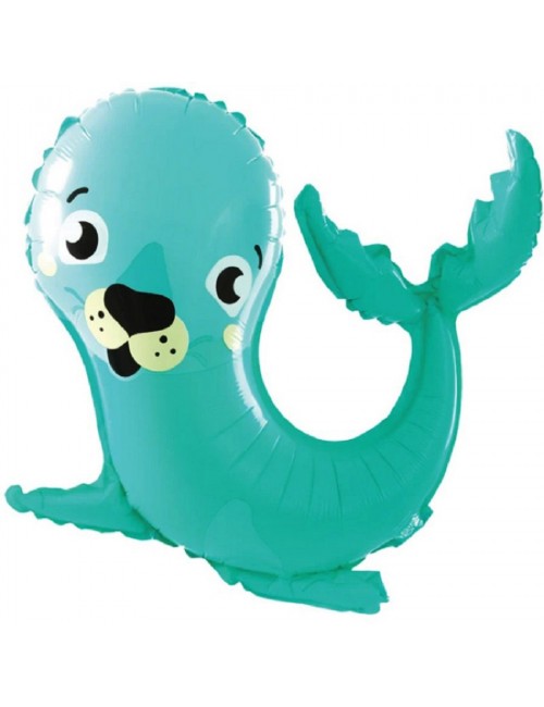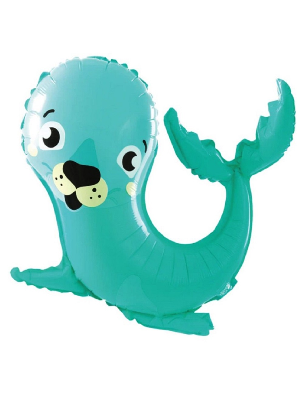 Balon folie Foca, dimensiuni 46 X 63 cm (dupa umflare), culoare turcoaz, poate fi umplut doar cu aer.