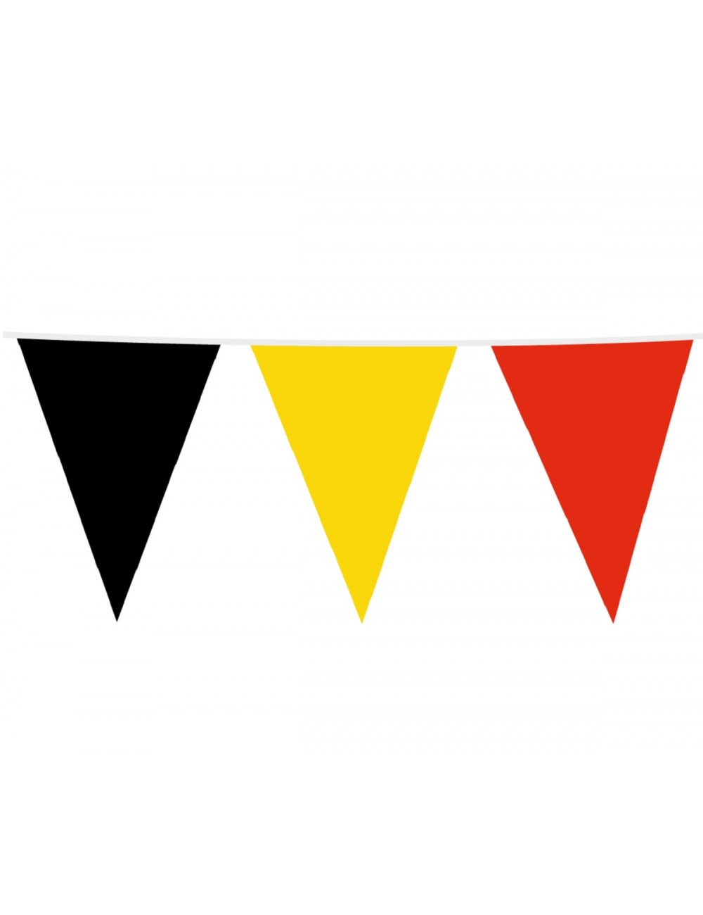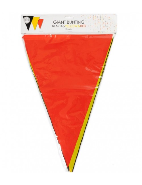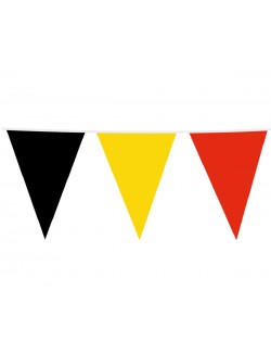 Ghirlanda stegulete negru-galben-rosu, lungime totala aprox. 10 metri, din folie PVC subțire, contine 15 fanioane de 30*45 cm fiecare.