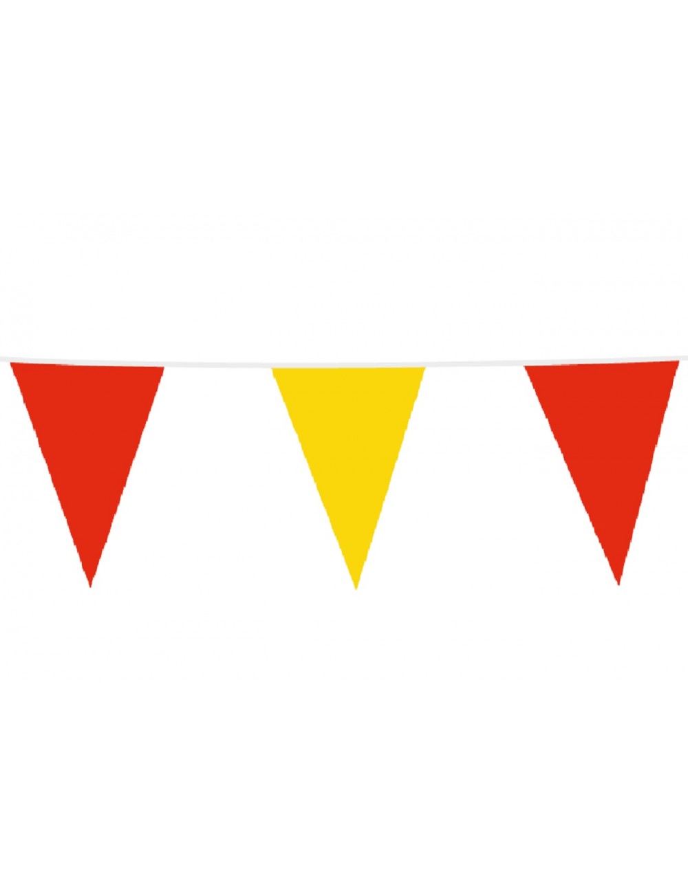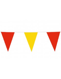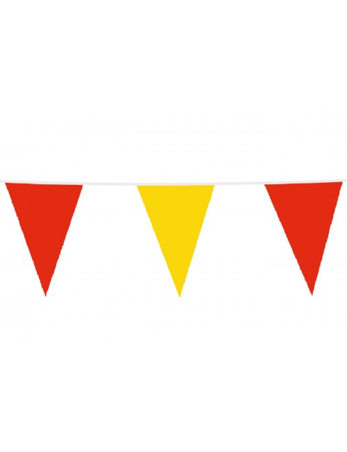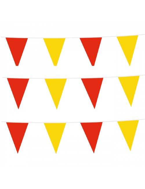 Ghirlanda stegulete rosu-galben, lungime 10 ml, contine 15 fanioane din PVC cu dimensiuni 30 x 20 cm fiecare.