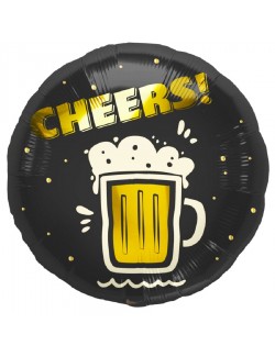 Balon folie Halba de Bere - Cheers!, diametru 46 cm, poate fi umplut cu heliu (pluteste) sau aer (nu pluteste).