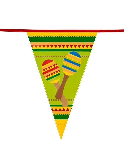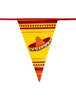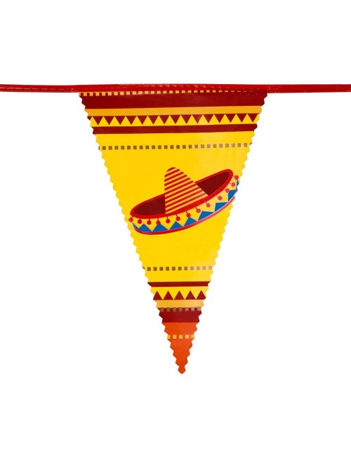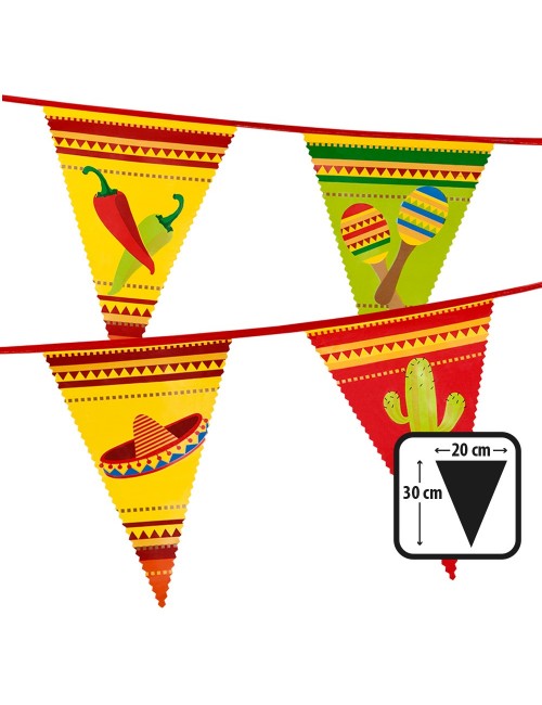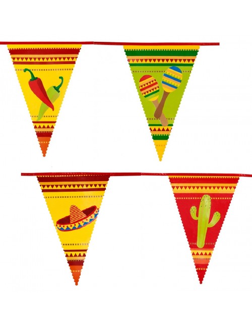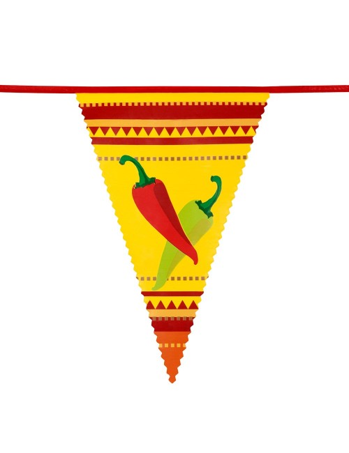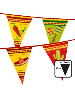 Ghirlanda Fiesta Mexicana, lungime 6 ml, contine 15 fanioane triunghiulare din PVC cu dimensiuni 30 x 20 cm fiecare, imprimeu pe o singura parte.