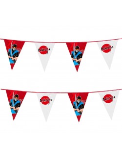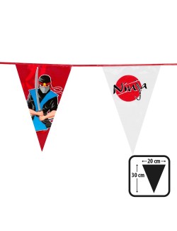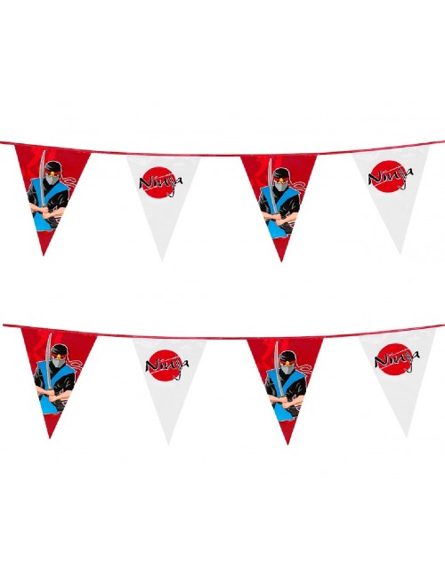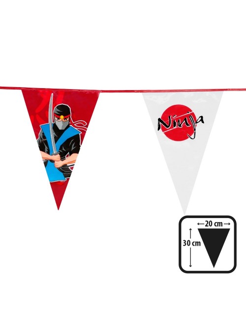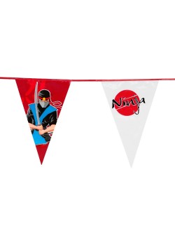 Ghirlanda stegulete Ninja party,, lungime 6 ml, contine 15 fanioane triunghiulare din polietilena, cu dimensiuni 30 x 20 cm fiecare, imprimeu pe o singura parte.
