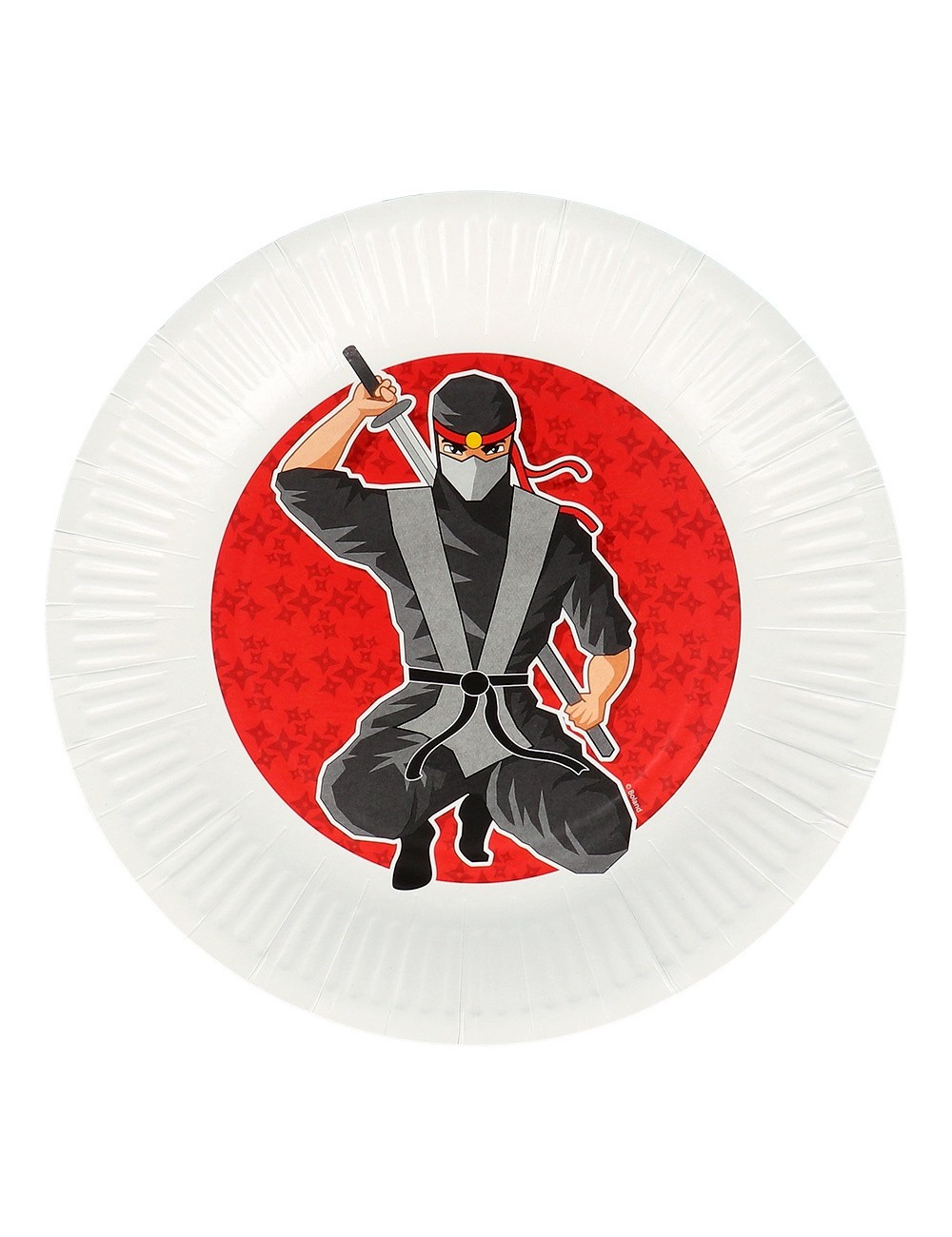 Set 8 farfurii Ninja party, diametru 23 cm, de unica folosinta, din carton, culori alb-negru-rosu, perfect pentru petrecerea ta cu tematică Ninja.