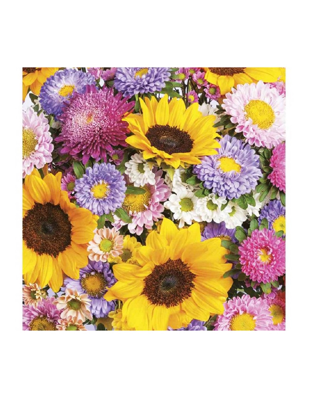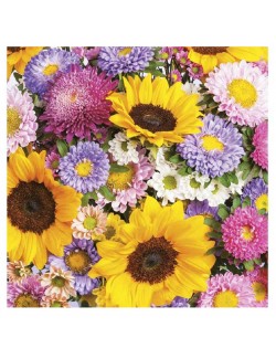 Set 20 servetele, Buchet cu floarea-soarelui,, dimensiuni 33 x 33 cm (extins), din 3 straturi de hartie, perfecte pentru mese festive.