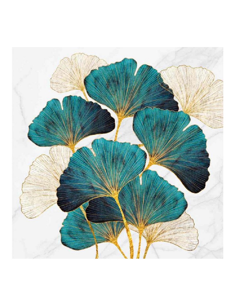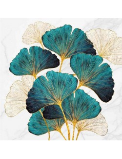 Set 20 servetele Gold & Emerald Ginkgo Biloba, dimensiuni 33 x 33 cm (extins), din 3 straturi de hartie alba, imprimeu verde-auriu.