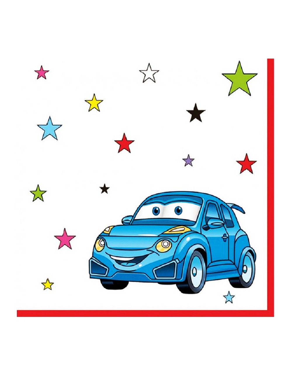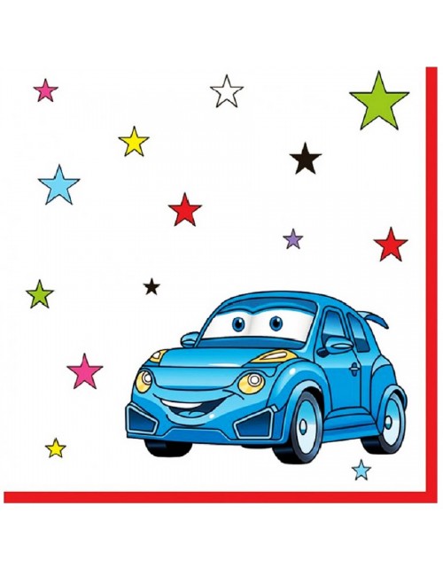 Set 20 servetele Masinuta albastra, dimensiuni 33 x 33 cm (extins), din 2 straturi de hartie, imprimeu cu o masinuta albasra si stelute multicolore.