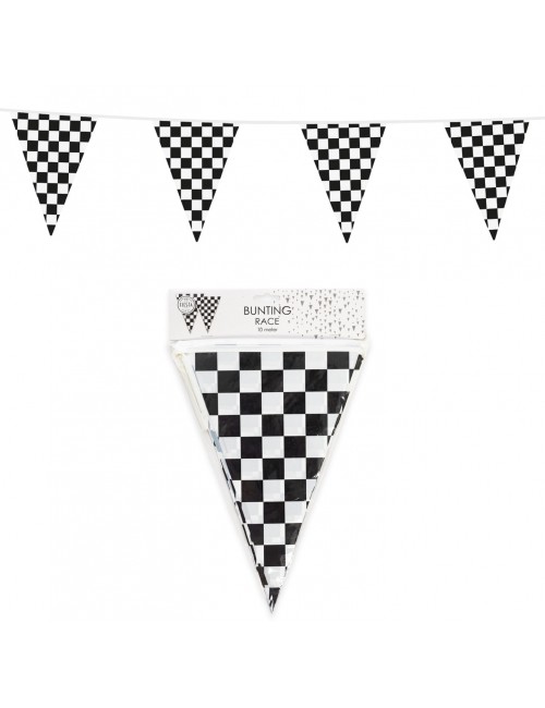 Ghirlanda decor, Formula 1 / Sah, lungime 10 ml, alcatuita din 15 stegulete din plastic, imprimate pe ambele parti, dimensiuni stegulet 20 x 30 cm.
