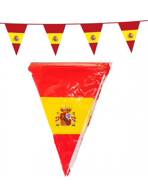 Ghirlanda Steag Spania, lungime 10 ml, contine 15 fanioane din plastic subtire, cu dimensiuni 30 x 20 cm fiecare.