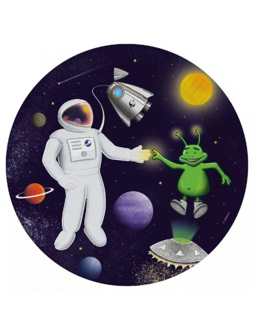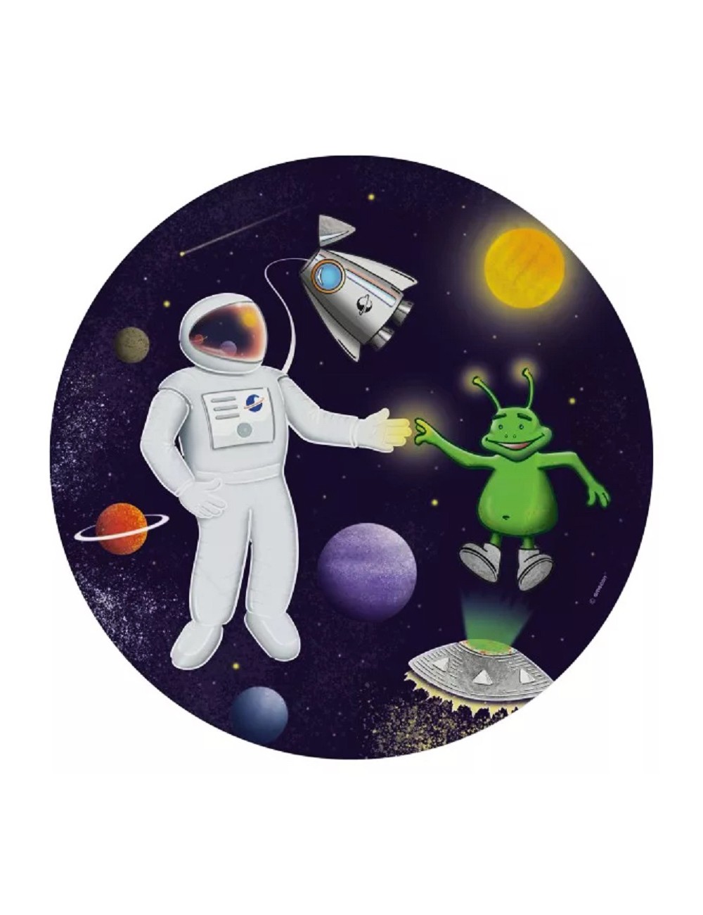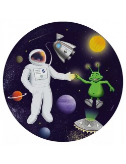 Set 8 farfurii Spatiu - Space party, diametru 23 cm, de unica folosinta, fabricate din carton.