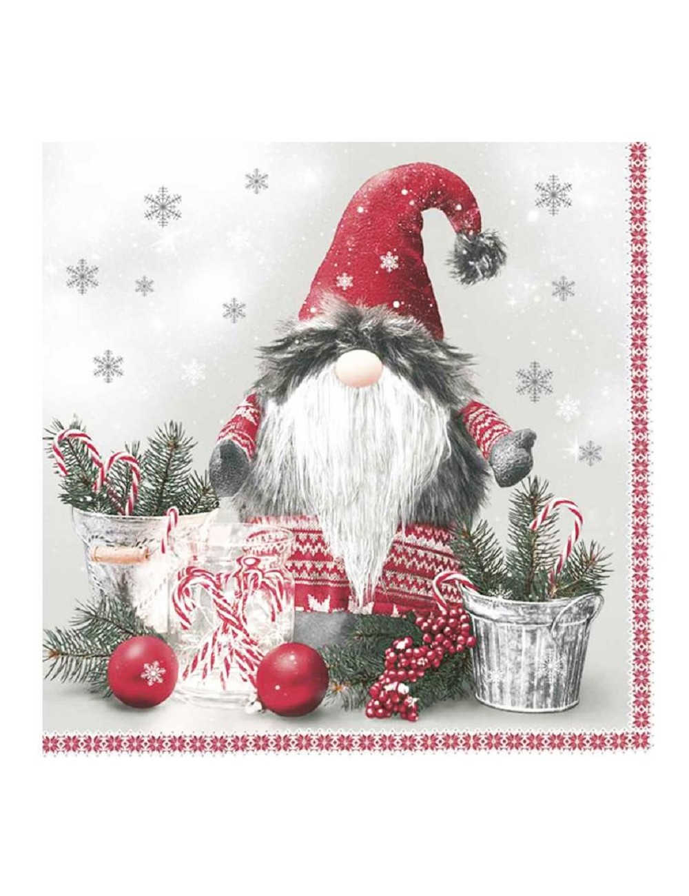 Set 20 servetele Spiridus Craciun, dimensiuni 33 x 33 cm (extins), din 3 straturi de hartie, imprimeu multicolor.