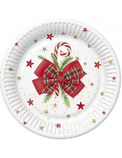 Set 8 farfurii Fundita Craciun, diametru 23 cm, de unica folosinta, fabricate din carton, pentru petreceri tematice.
