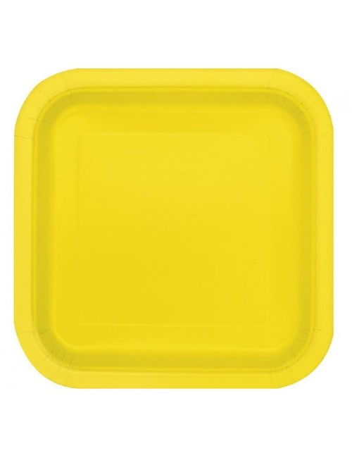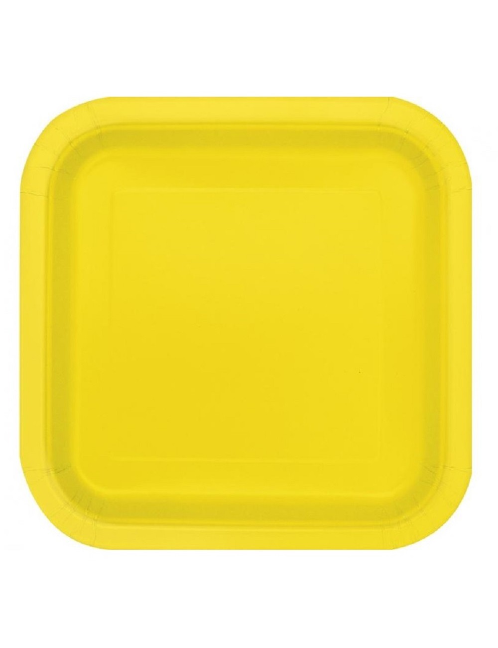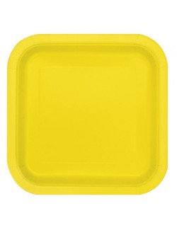 Set 14 farfurii patrate Galbene, cu latura de 22 cm, de unica folosinta, fabricate din carton, nu contin plastic.