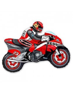 Balon Motocicleta de curse, 66 x 84 cm, din folie de aluminiu, culoare rosie, imprimeu identic fata-verso.