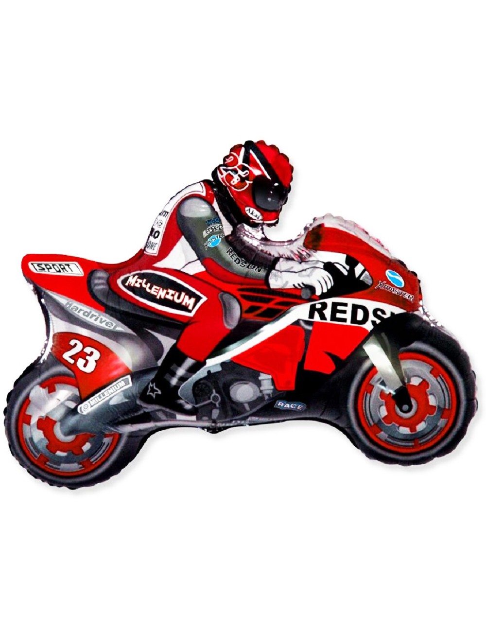 Balon folie Motocicleta de curse, culoare rosie, dimensiuni 66 x 84 cm, din folie de aluminiu, culoare rosie, imprimeu identic fata-verso.