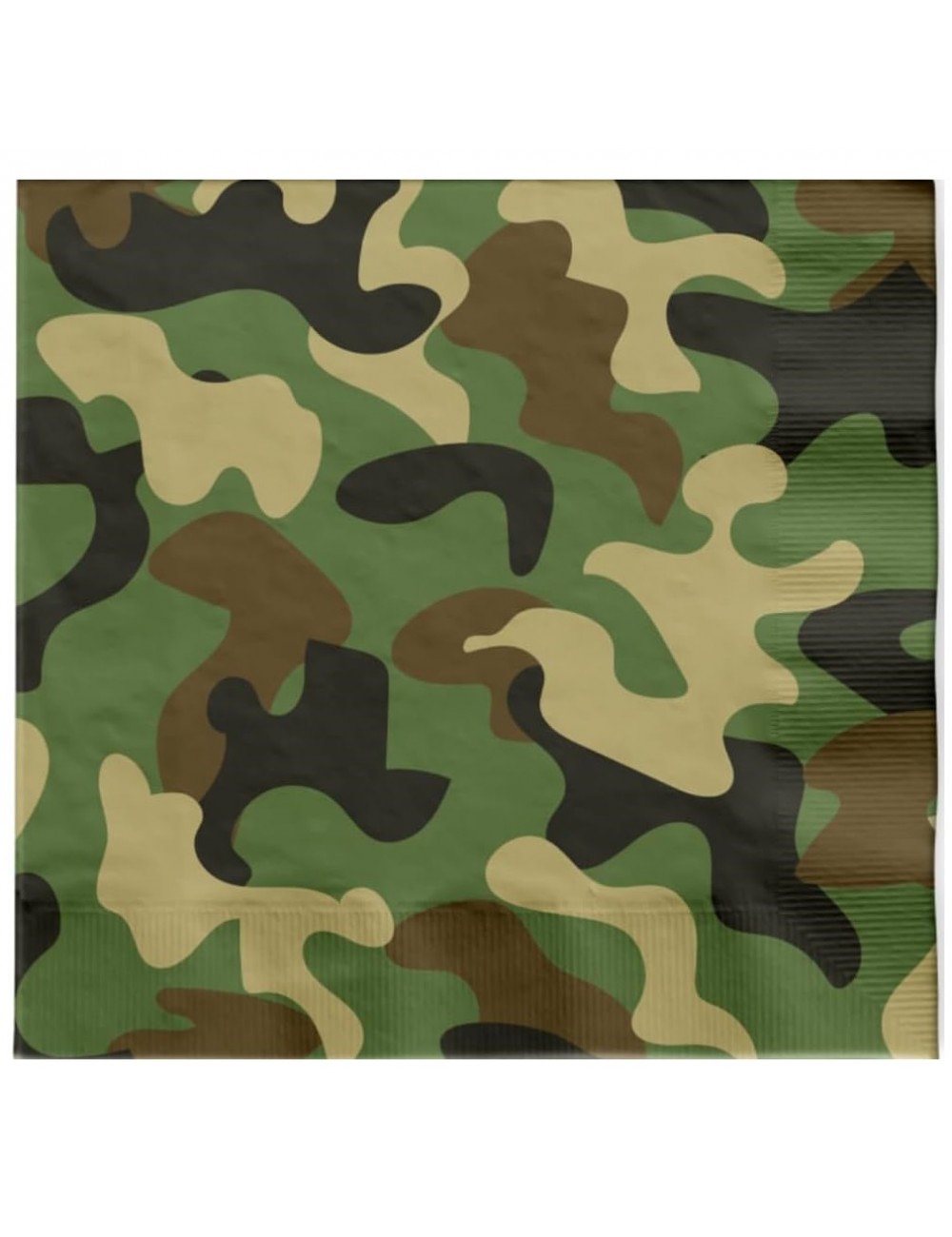 Set 20 servetele Camuflaj, dimensiuni 33 x 33 cm (extins), din 2 straturi de hartie fina, culori verde-kaki.