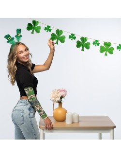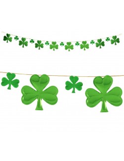 Ghirlanda Trifoi St Patrick's day, lungime 300 cm, din folie verde, dimensiuni frunza 20 x 20 cm.