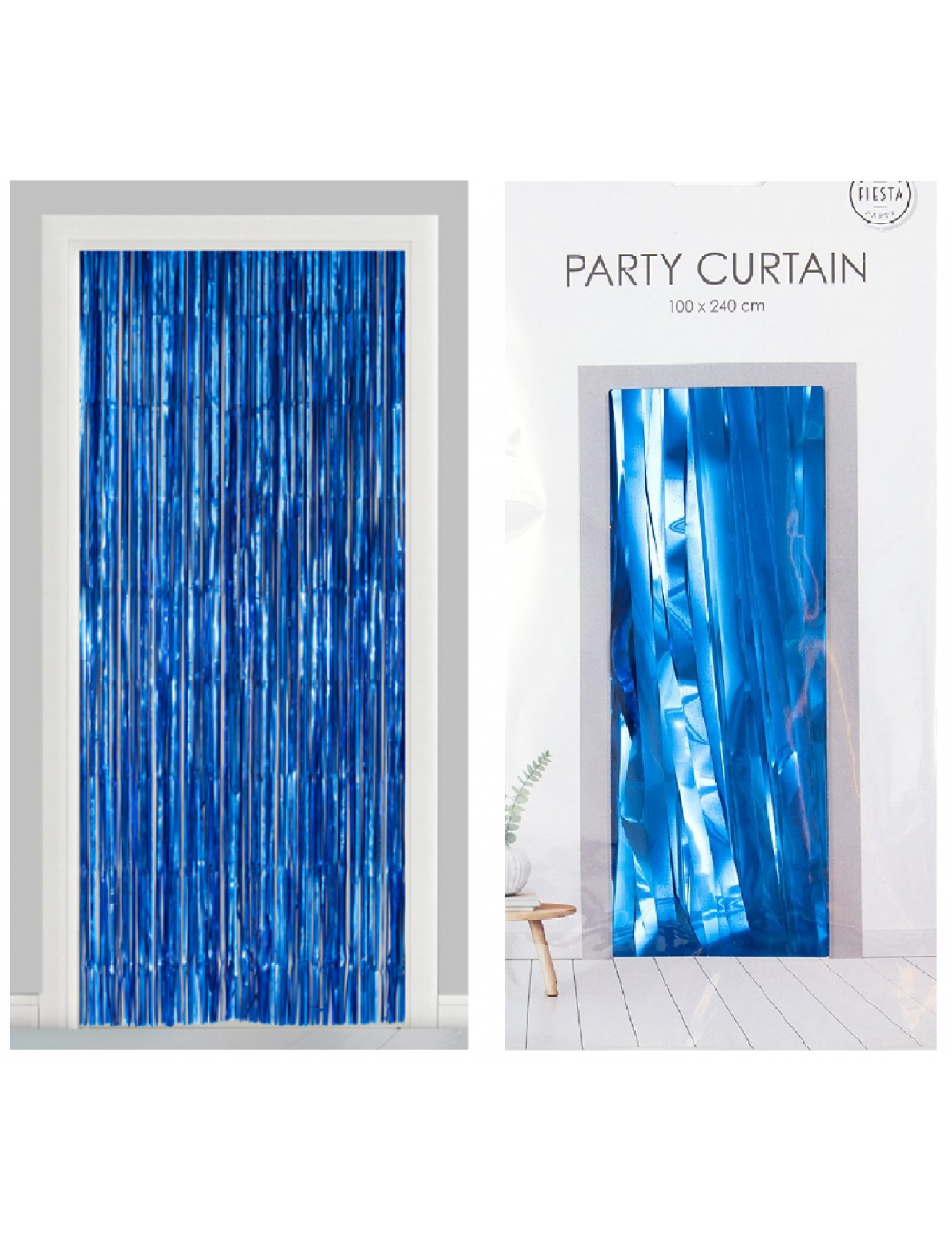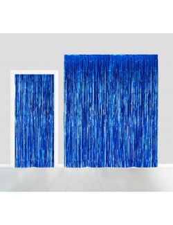 Perdea folie ignifuga, albastra, inaltime 240 cm, latime 100 cm, poate fi folosita ca decor pentru ușă sau perete.