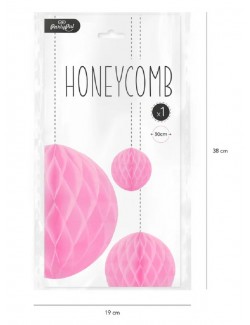 Decoratiune suspendata Glob tip fagure, Roz, cu diametrul de 30 cm, din hartie colorata.