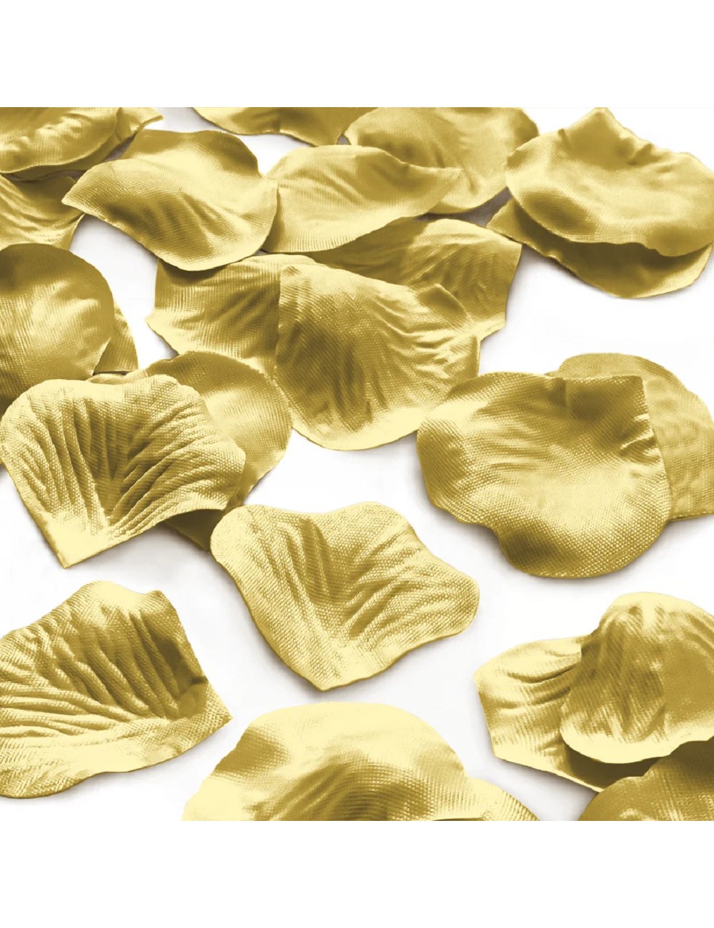 Set 100 Confetti Petale artificiale de trandafir, aurii, cu aspect realist, dimensiuni aprox. 5,5 x 5 cm, din material netesut, pentru decorarea meselor festive.