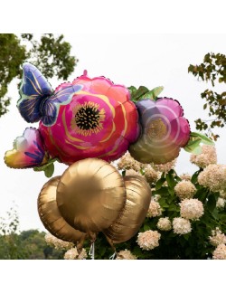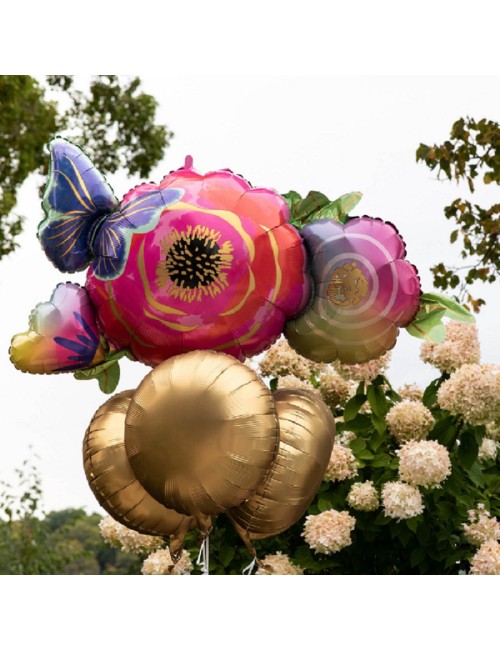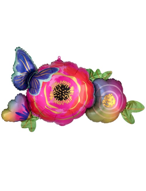 Balon folie, satinat, Flori si fluturi, dimensiuni aprox. 93 x 48 cm, poate fi umplut cu aer sau cu heliu, in culori luminoase, este un decor frumos pentru petreceri.
