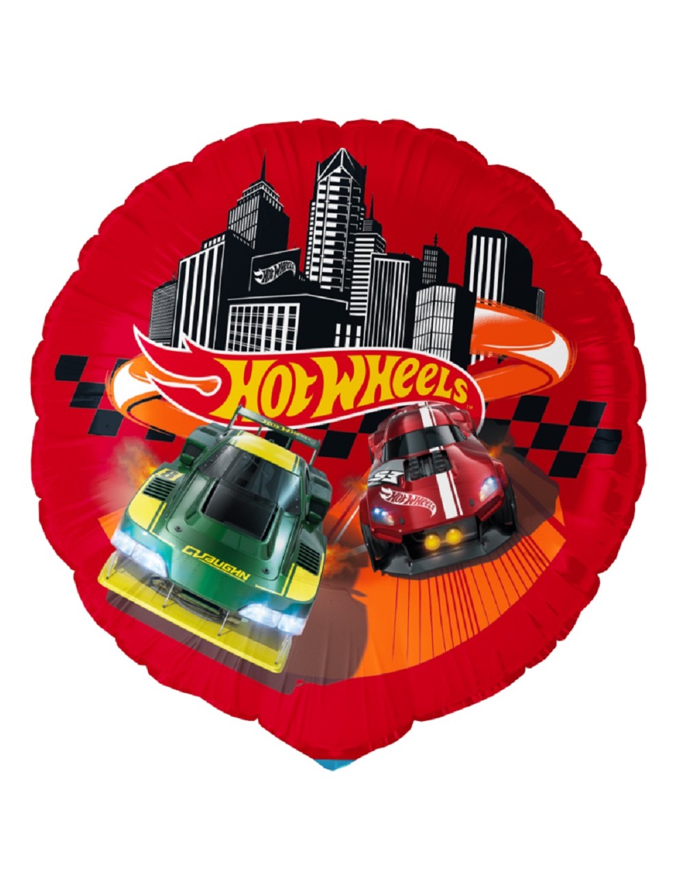 Balon folie Hot Wheels, rotund, diametru 48 cm (dezumflat), imprimeu identic fata-verso, potrivit pentru umplerea cu heliu (pluteste) sau cu aer (nu pluteste).