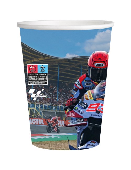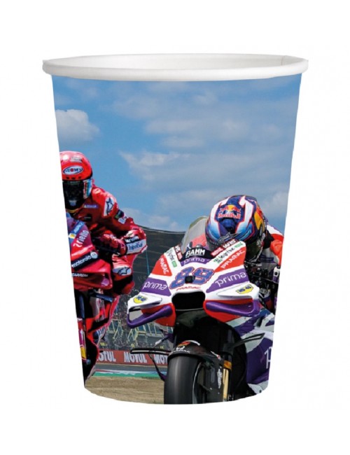 Set 8 pahare Party Moto GP, 250 ml, din carton, de unica folosinta, perfecte pentru petreceri ale fanilor curselor Motorcycle Grand Prix